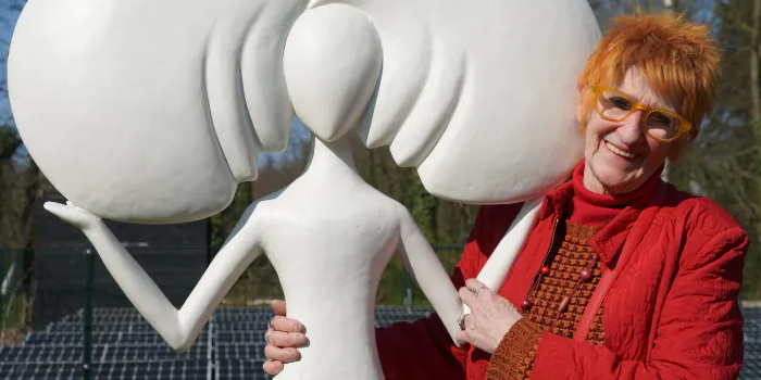 Nanda van Alebeek, 77 lentes jong, energiek en zeer creatief exposeert tijdens de kunstmanifestatie AmiArteS in de Nispenhoeve. Er staan veel in het oog springende grote beelden van haar, zoals een reusachtig donkerblauw paard dat achterom kijkt en een glamoureuze dame blanche. Wie is de kunstenares die al deze briljante kunstwerken heeft gemaakt. We ontmoeten haar op het zonovergoten terrein.